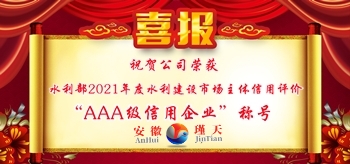 - 公司榮獲2021年度水利建設(shè)市場(chǎng)主體信用評(píng)價(jià)“AAA級(jí)信用企業(yè)”稱(chēng)號(hào)2021-12-18