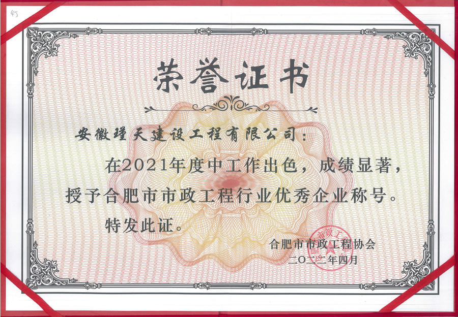 2021年度合肥市市政工程行業(yè)優(yōu)秀施工企業(yè)